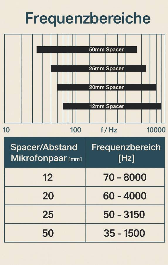 Je nach Anwendung kommen verschiedene Sondentypen zum Einsatz. Sonden mit kleinem Mikrofonabstand (6 mm) sind besonders geeignet für hochfrequente Messungen und kleine Schallquellen, während Sonden mit größerem Abstand (50 mm) bei tiefen Frequenzen und großen Quellen ihre Stärken ausspielen. Die Auswahl der optimalen Sonde ist entscheidend für die Qualität der Messergebnisse.